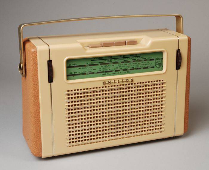 Blaupunkt Radio (met lampen) zoals we er een thuis hadden en rechts een type van de eerste transistorradio's ontworpen door Philips.