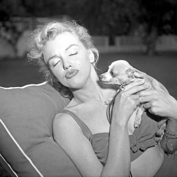 Marilyn Monroe met haar chihuahua Josefa in 1950